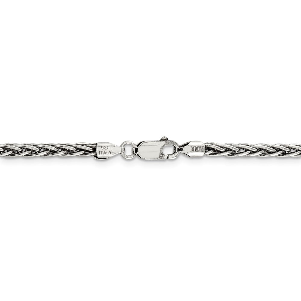925 Sterling Silver Solid 3.25mm Antiqued Square Shape Spiga Chain Necklace, 30"