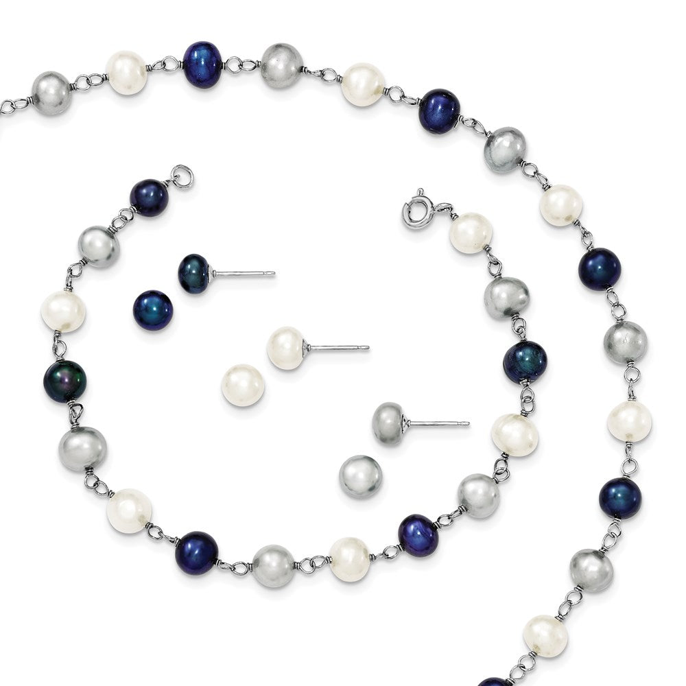 925 Sterling Silver Freshwater Cultured Pearl Necklace, Bracelet and 3-Piece Earrings Set