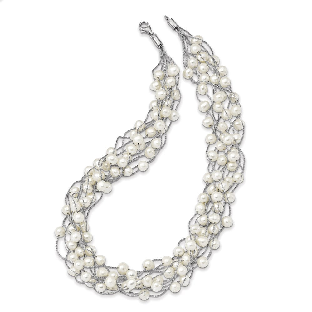 925 Sterling Silver White Freshwater Cultured Pearl Multi-strand Necklace (6-8mm), 15"