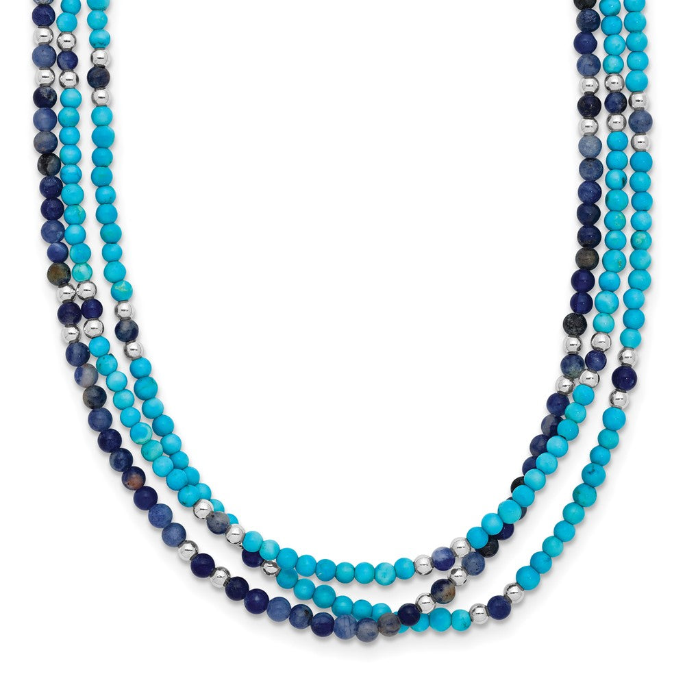 925 Sterling Silver Iolite/Lapis Quartz/Reconstructed Turquoise 3-Strand Necklace, 18" +2" Extender
