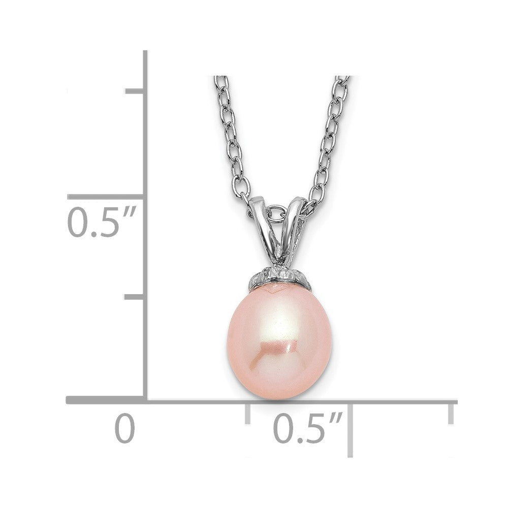 925 Sterling Silver Pink Rice Freshwater Cultured Pearl Necklace (6-7mm), 14"