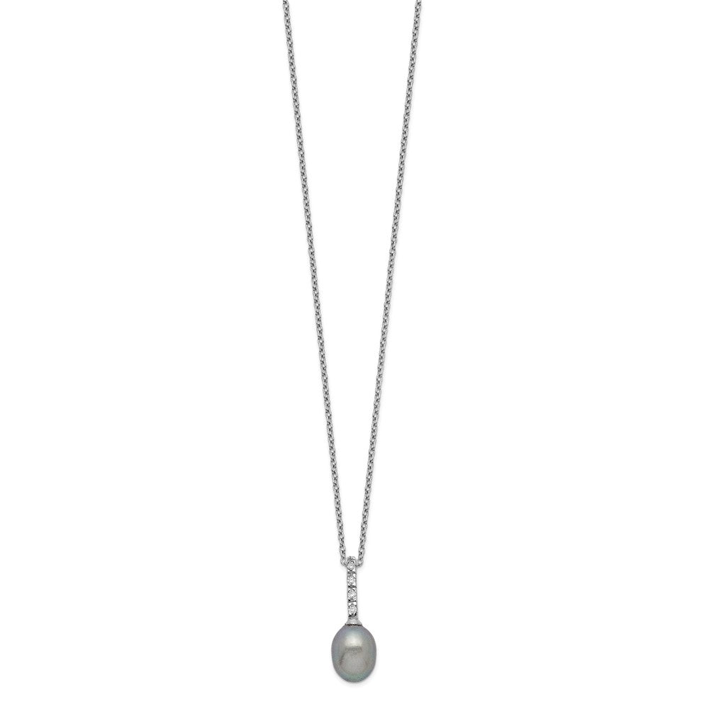 925 Sterling Silver Gray Freshwater Cultured Pearl Cubic Zirconia Necklace (7-8mm), 17"