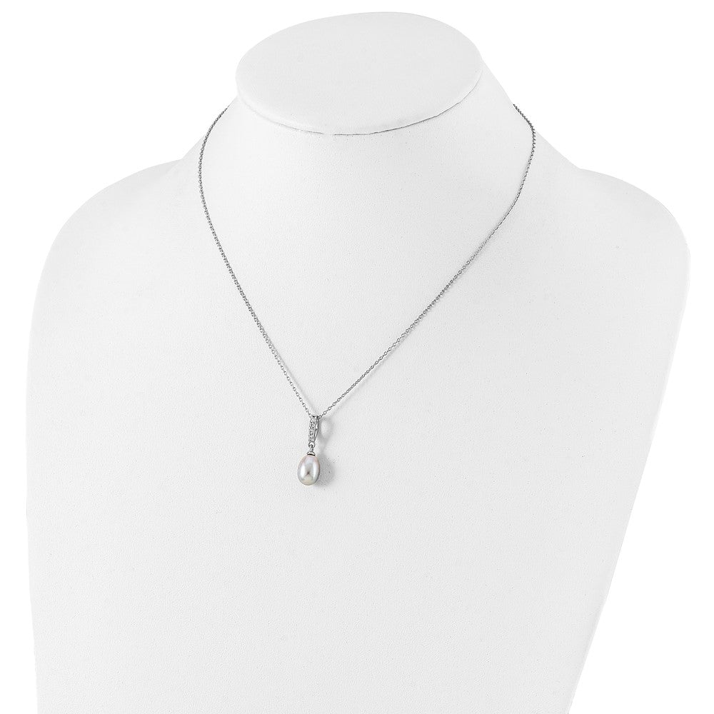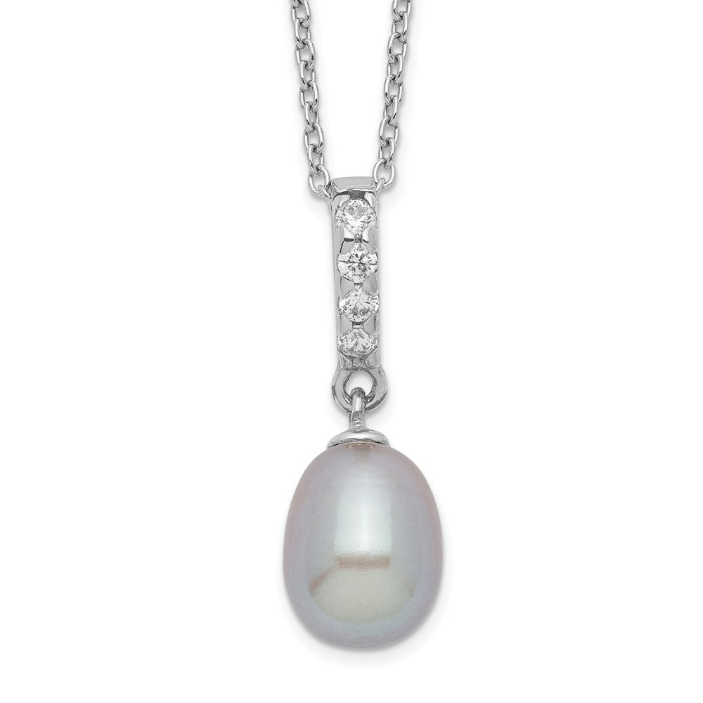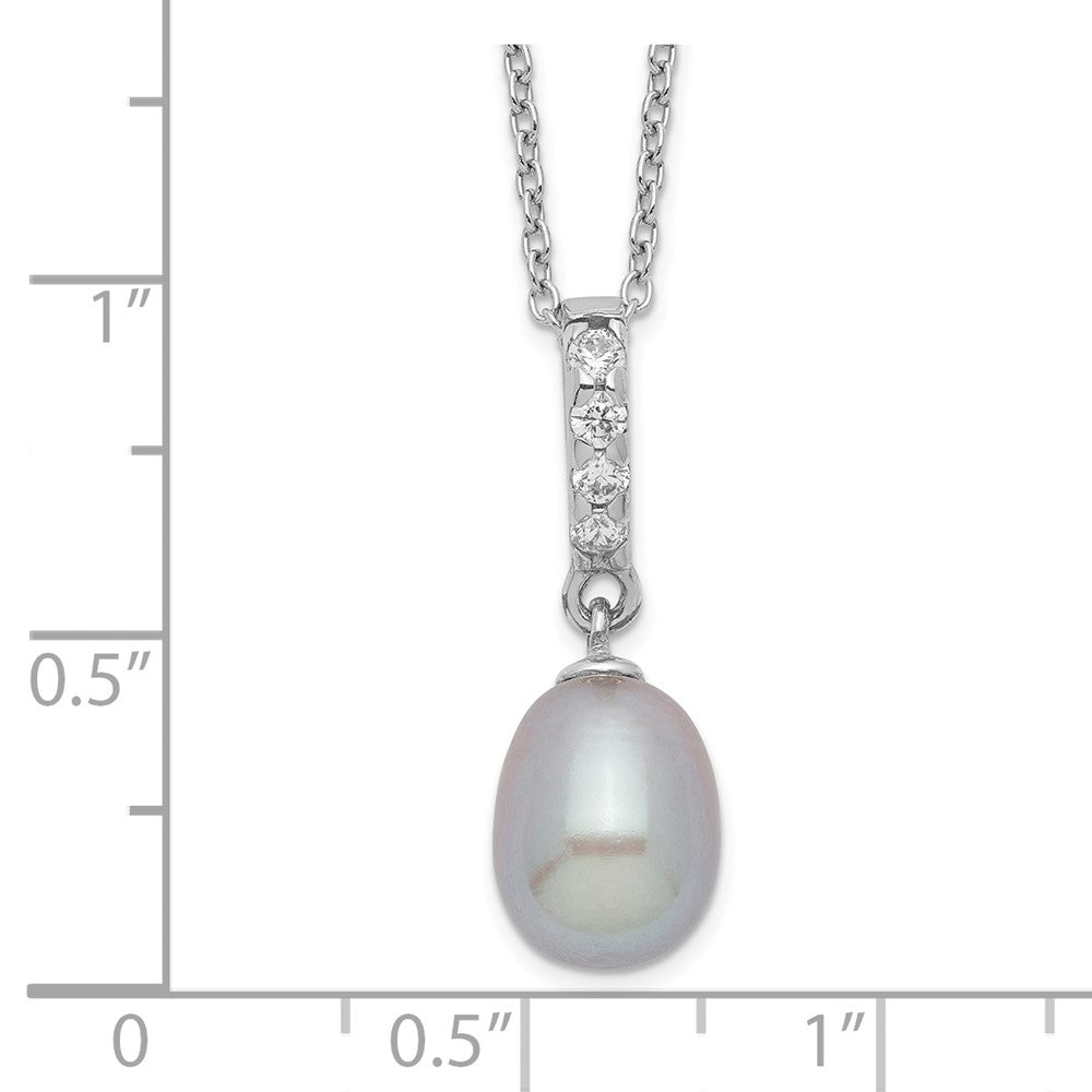 925 Sterling Silver Gray Freshwater Cultured Pearl Cubic Zirconia Necklace (8-9mm), 17"