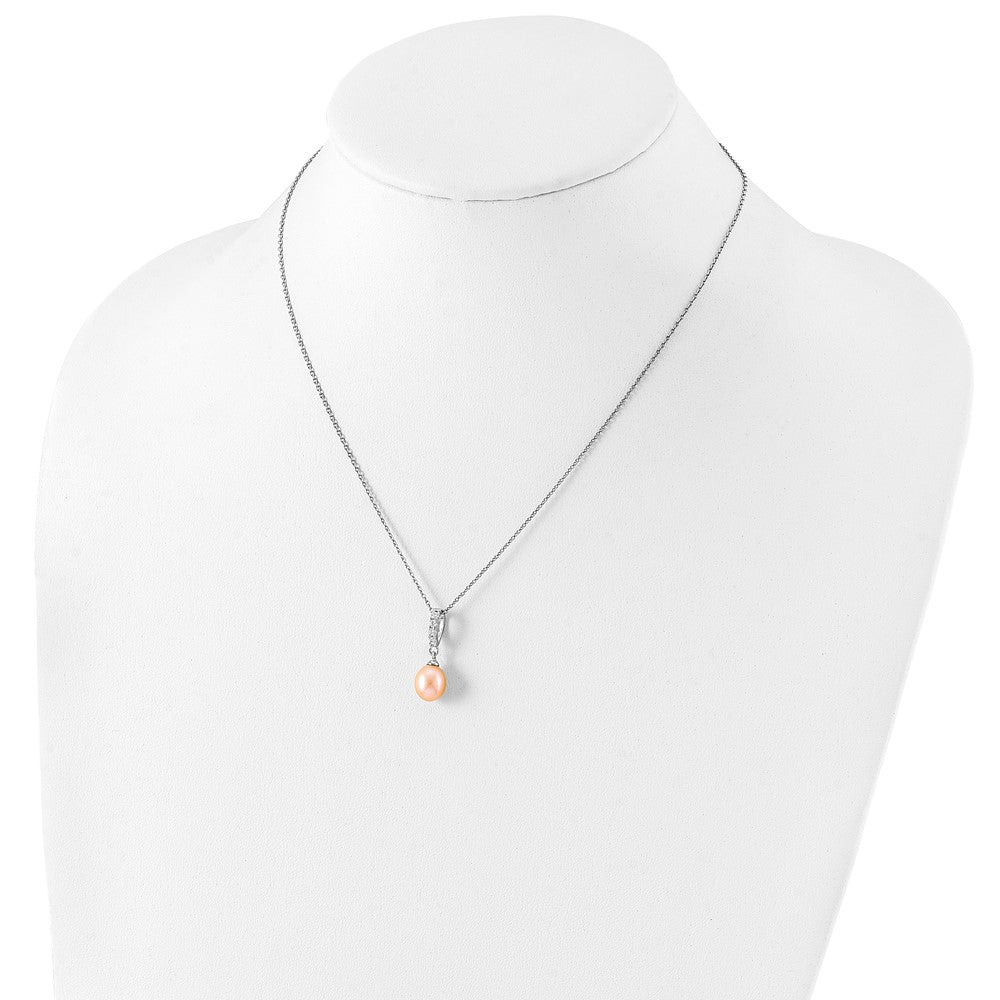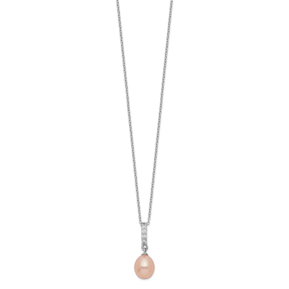 925 Sterling Silver Pink Freshwater Cultured Pearl Cubic Zirconia Necklace (8-9mm), 17"