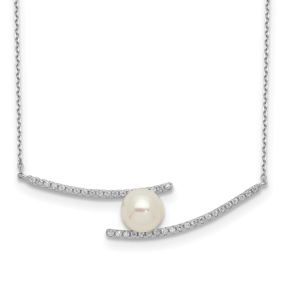 925 Sterling Silver White Button Freshwater Cultured Pearl Cubic Zirconia Necklace (7-8mm), 17"