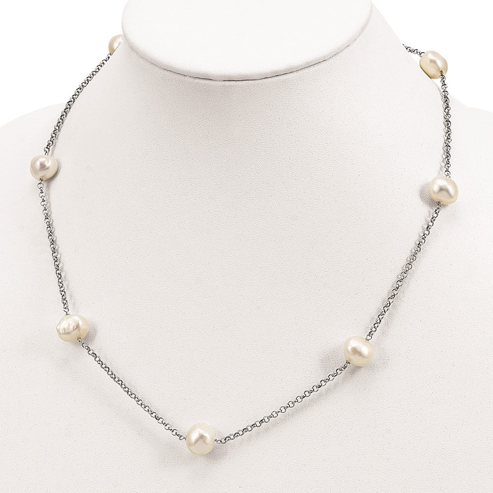 925 Sterling Silver White Baroque Freshwater Cultured Pearl 7-stat Necklace (9-1mm), 20"