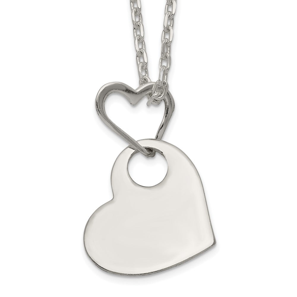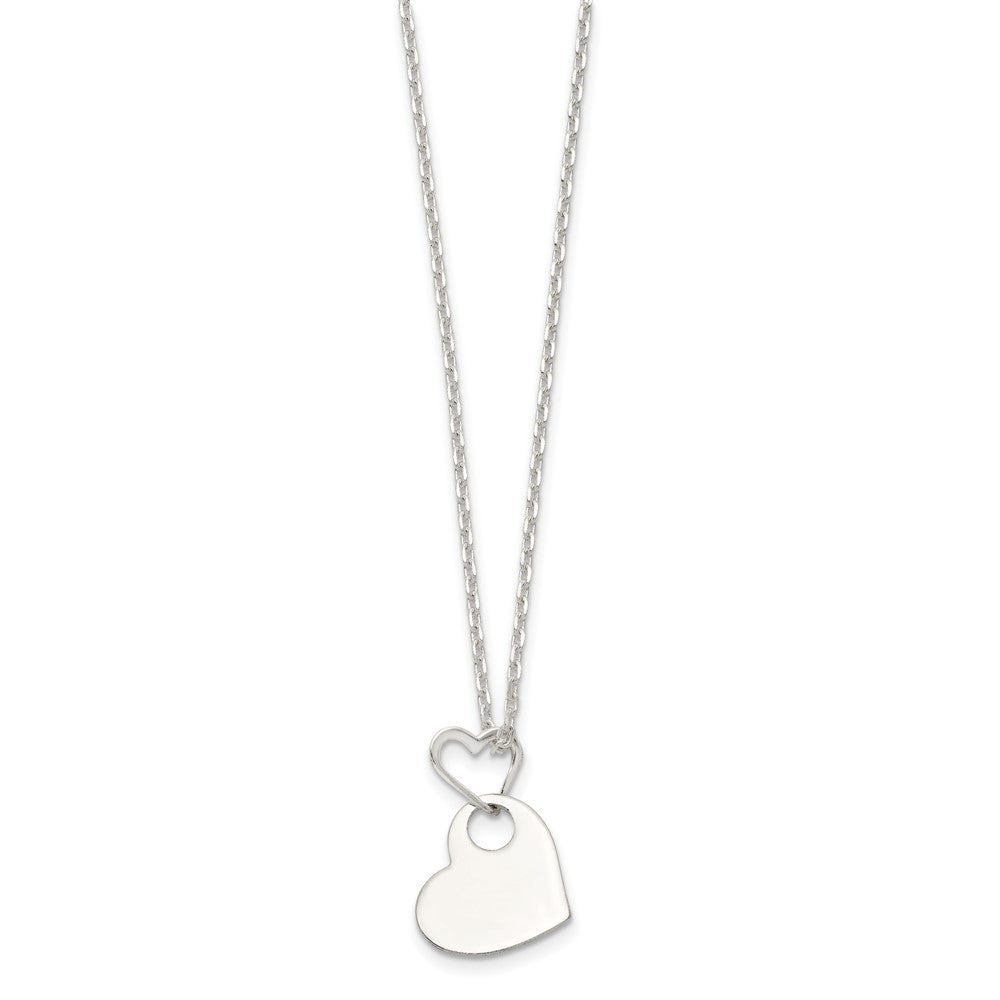 925 Sterling Silver Heart Holding Heart Necklace, 16"