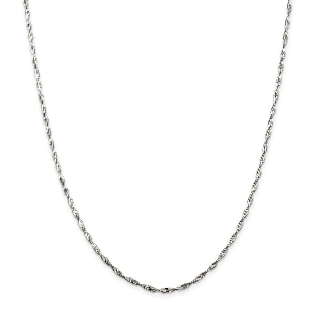 925 Sterling Silver 2mm Twisted Herringbone Chain Necklace, 16"