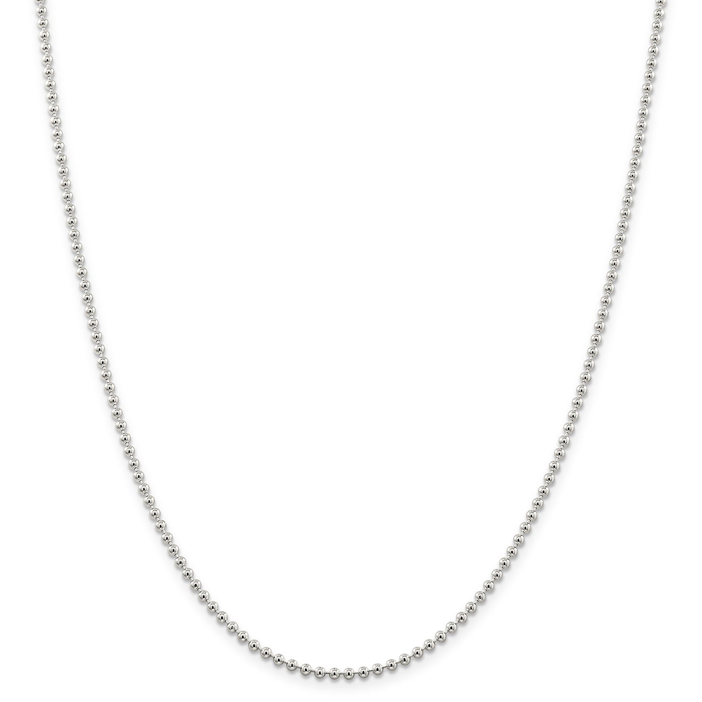 925 Sterling Silver 2.35mm Beaded Chain Necklace, 18"