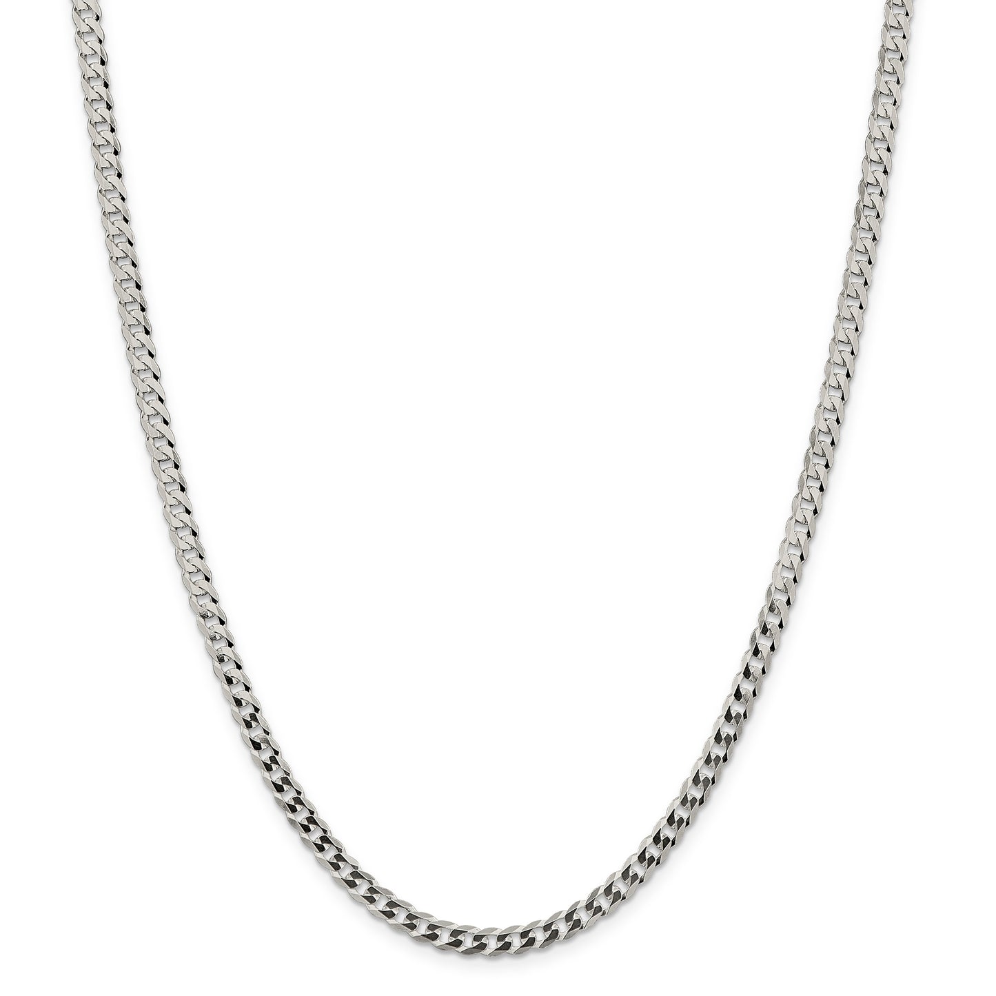 925 Sterling Silver 4.5mm Close Link Flat Curb Chain Necklace