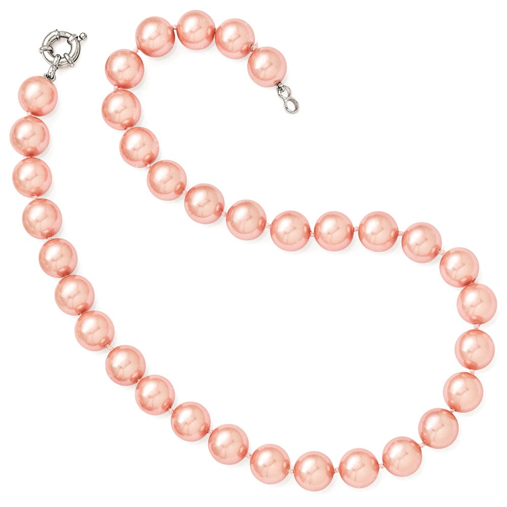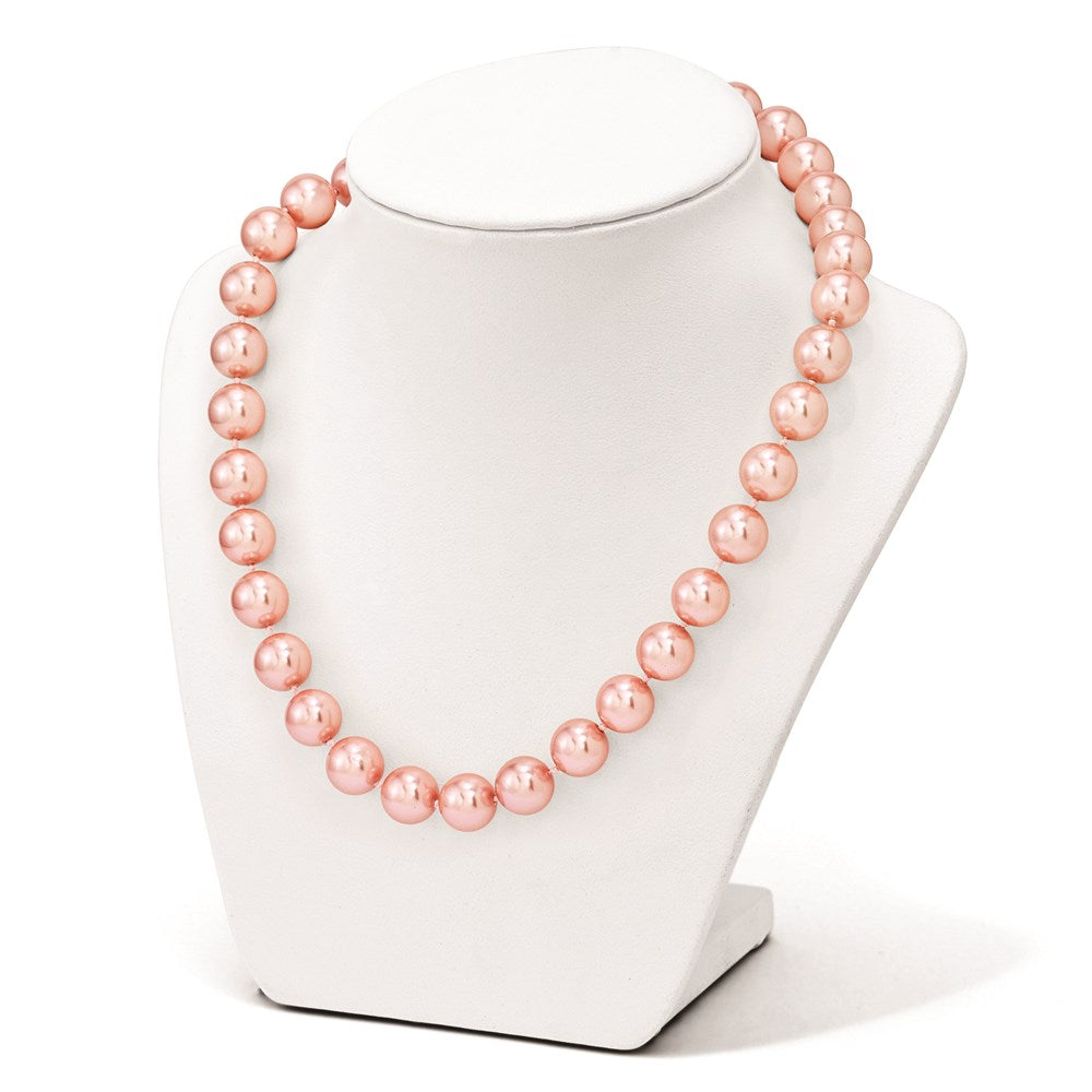 925 Sterling Silver Pink Imitation Shell Pearl Hand Knotted Necklace (12-13mm), 18"