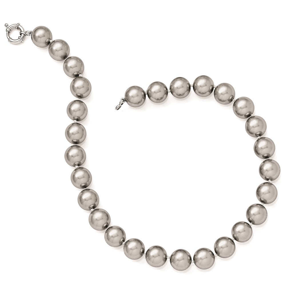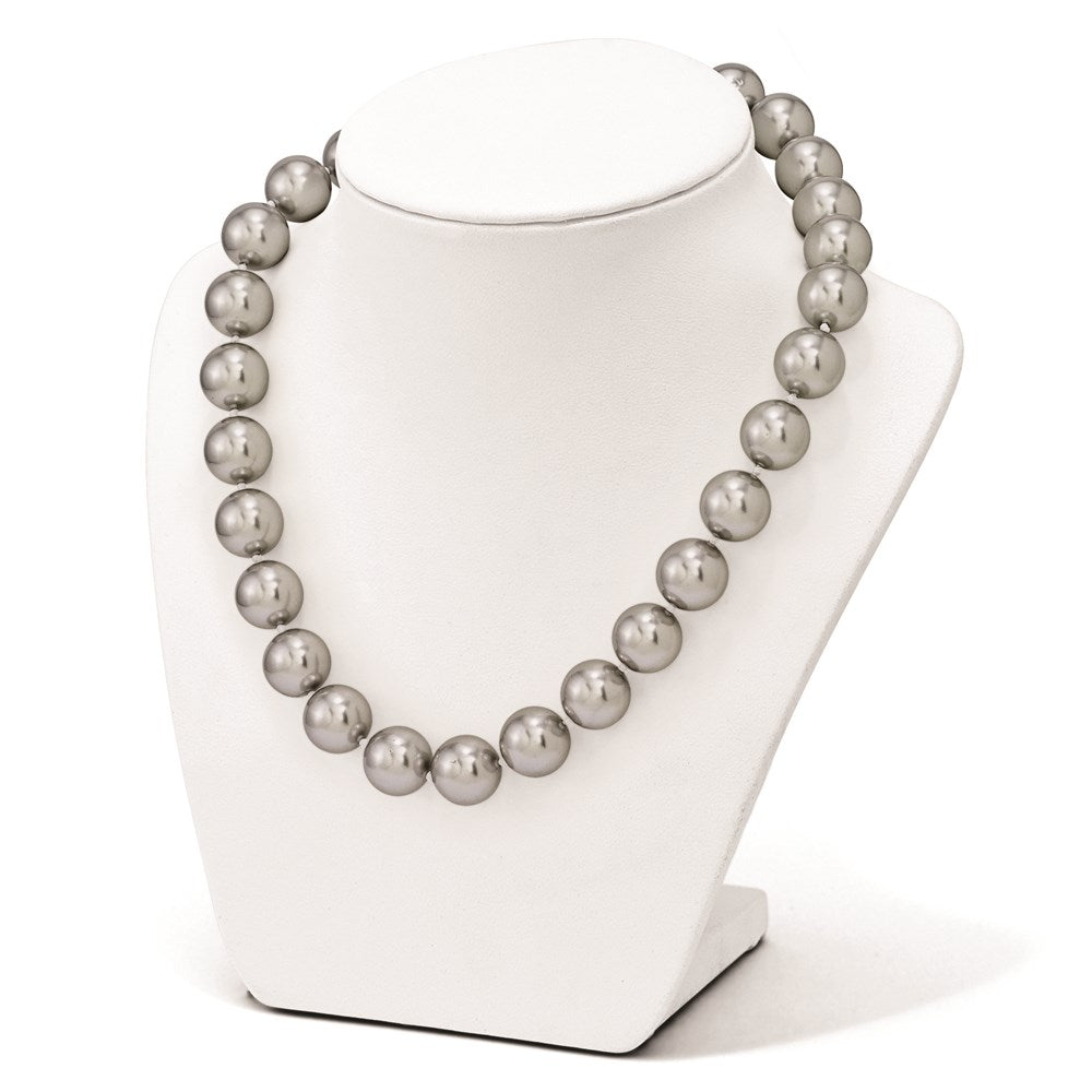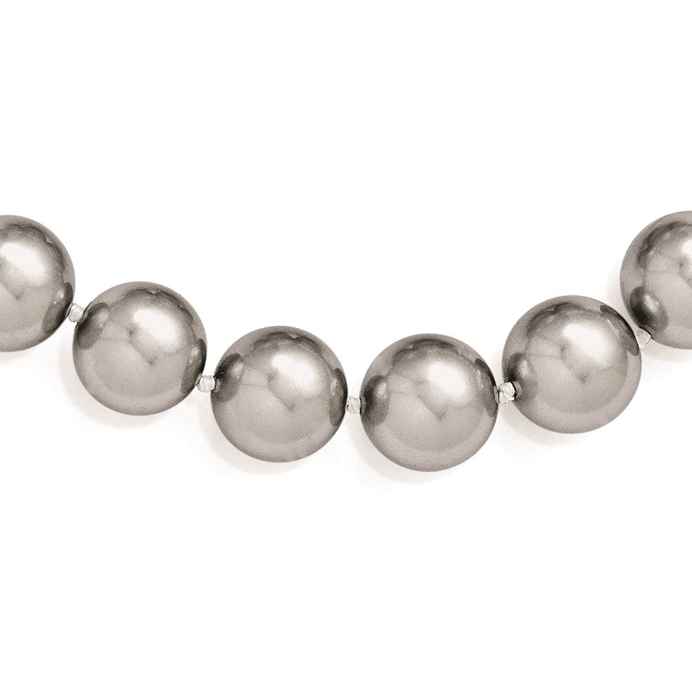 925 Sterling Silver Gray Imitation ion Shell Pearl Necklace (14-15mm), 18"