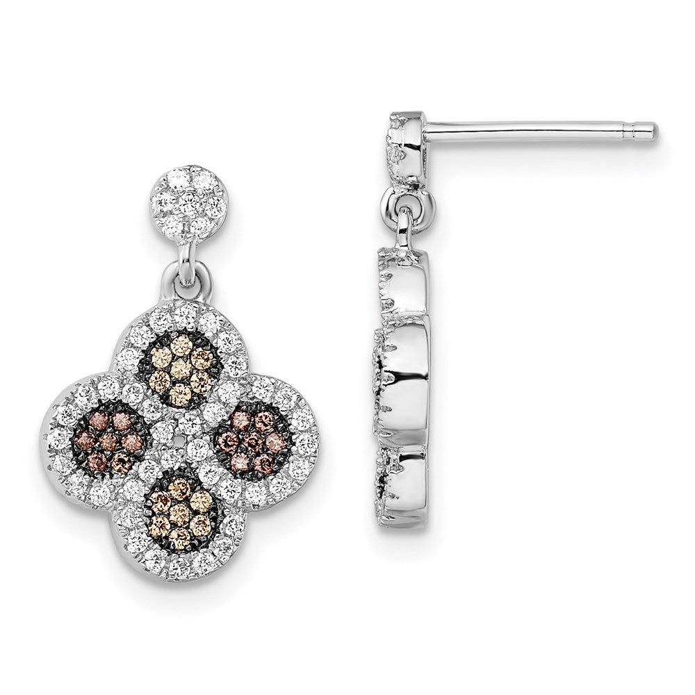 925 Sterling Silver Cubic Zirconia Brilliant Embers Flower Dangle Post Earrings