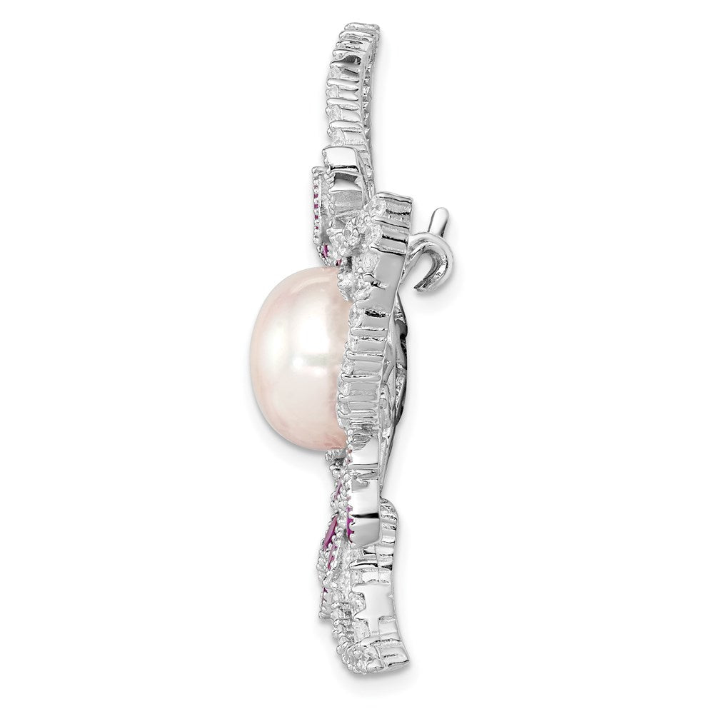 925 Sterling Silver White Freshwater Cultured Pearl Cubic Zirconia Pink Corundum Pin (10-11mm)