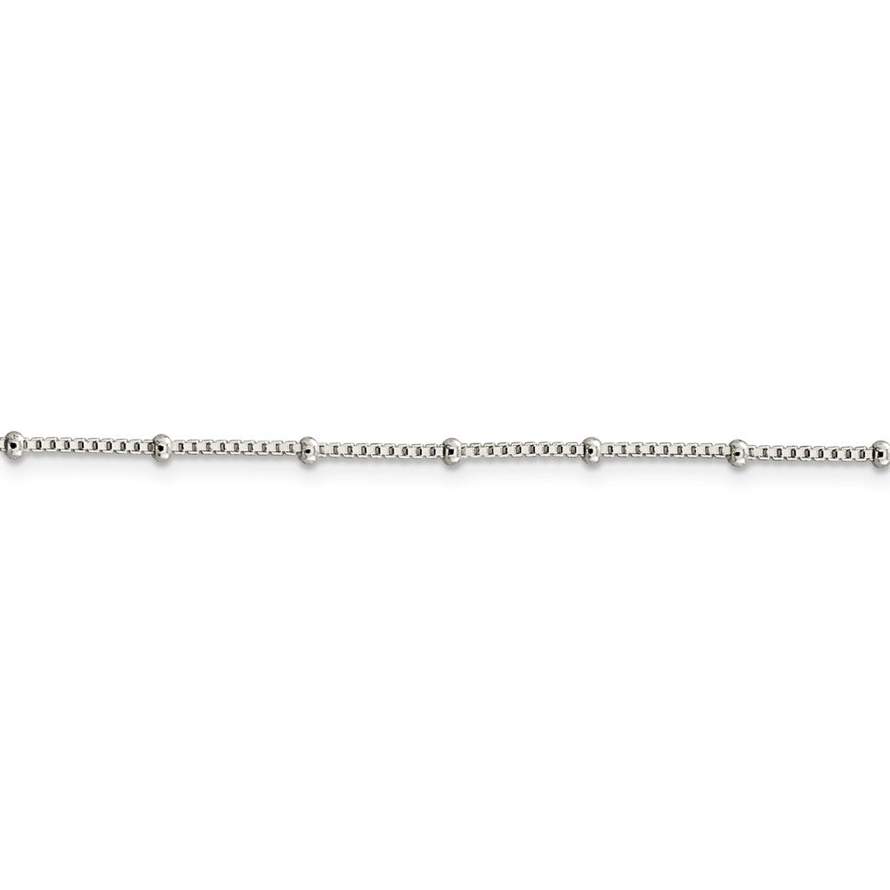 925 Sterling Silver 1.25mm Beaded Box Chain Necklace, 18"