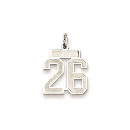 925 Sterling Silver Small Satin Number 26 Charm Pendant