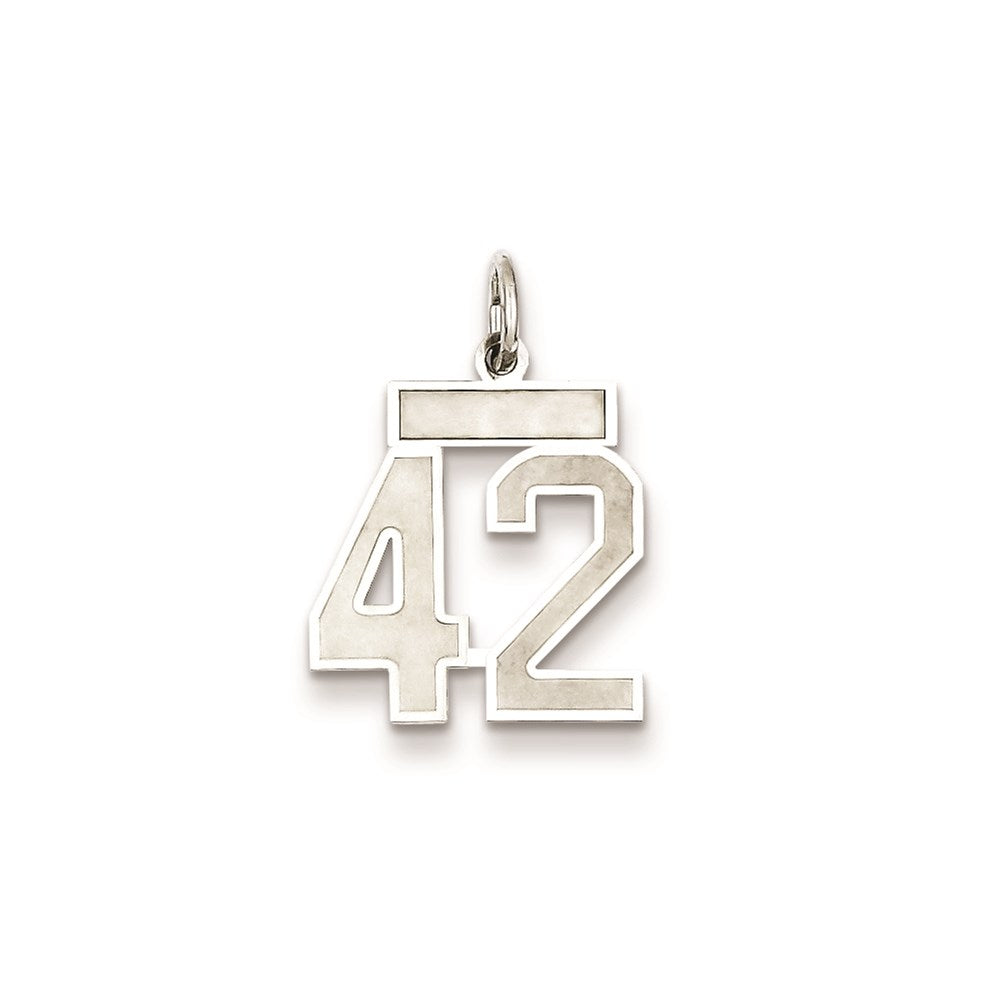 925 Sterling Silver Small Satin Number 42 Charm Pendant