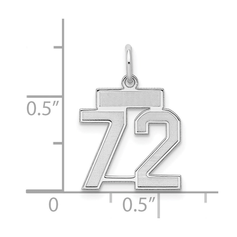 925 Sterling Silver Small Satin Number 72 Charm Pendant