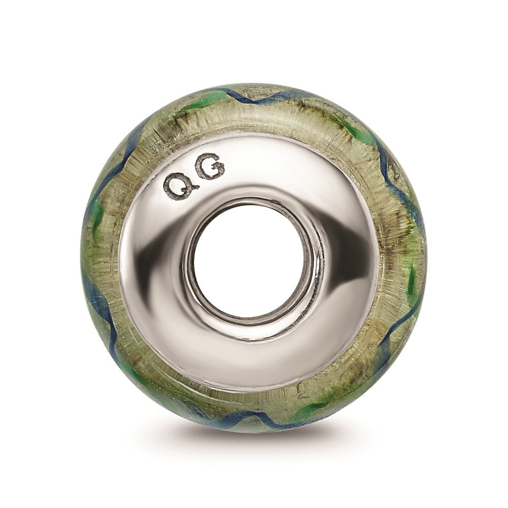 925 Sterling Silver Reflections Green/Blue Hand-Blown Glass Bead Charm Pendant