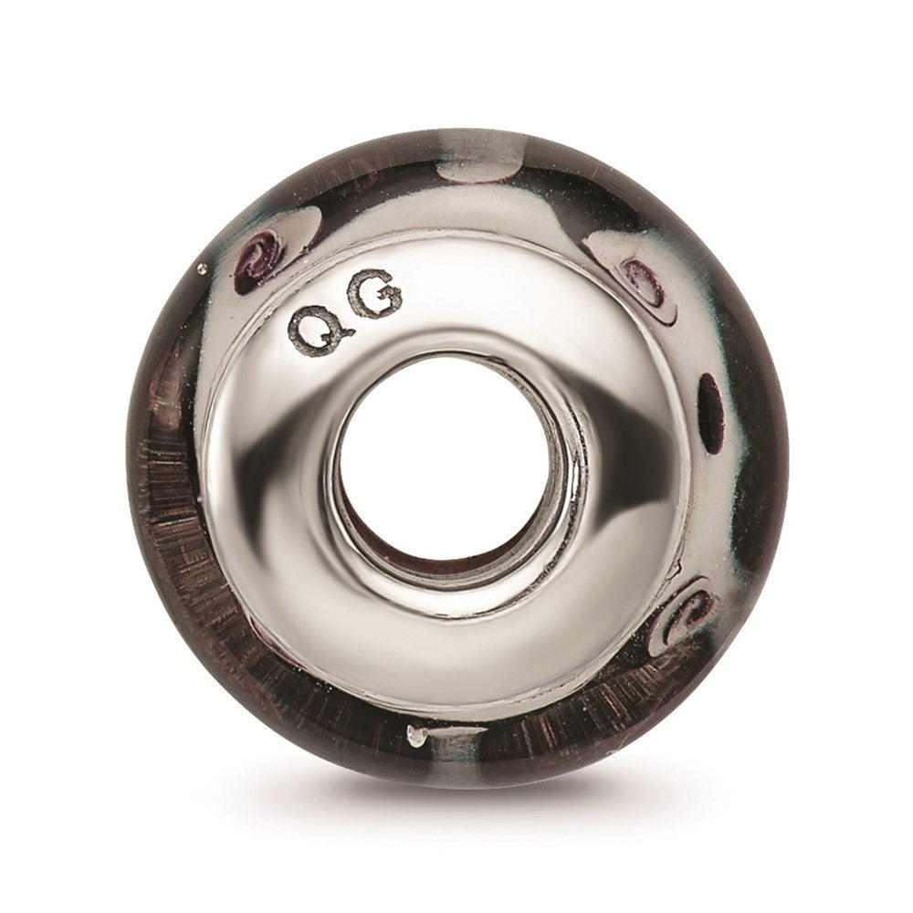 925 Sterling Silver Reflections Black/Grey Hand-Blown Glass Bead Charm Pendant