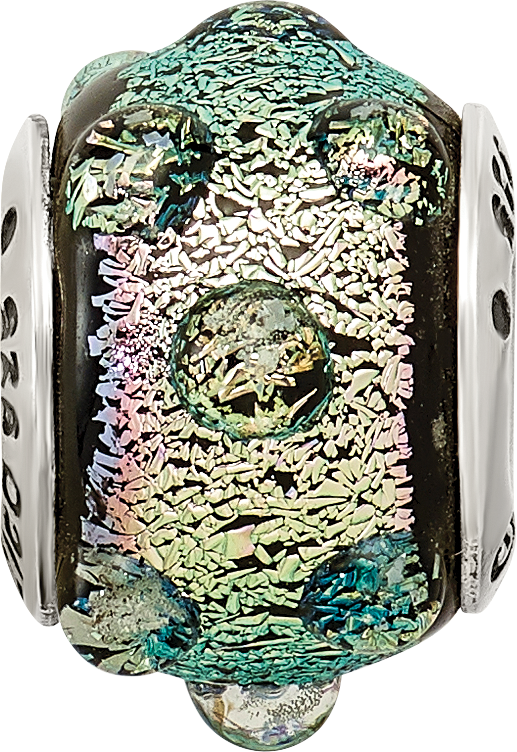 925 Sterling Silver Reflections Purple Dichroic Glass Bead Charm Pendant