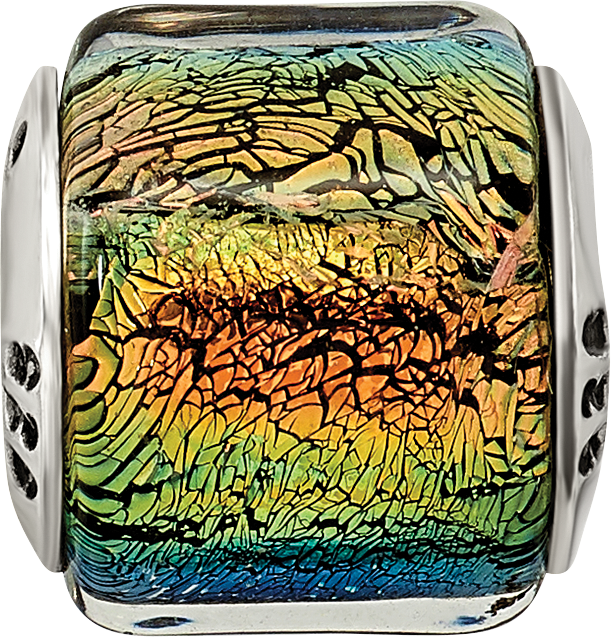 925 Sterling Silver Reflections Rainbow Dichroic Glass Bead Charm Pendant