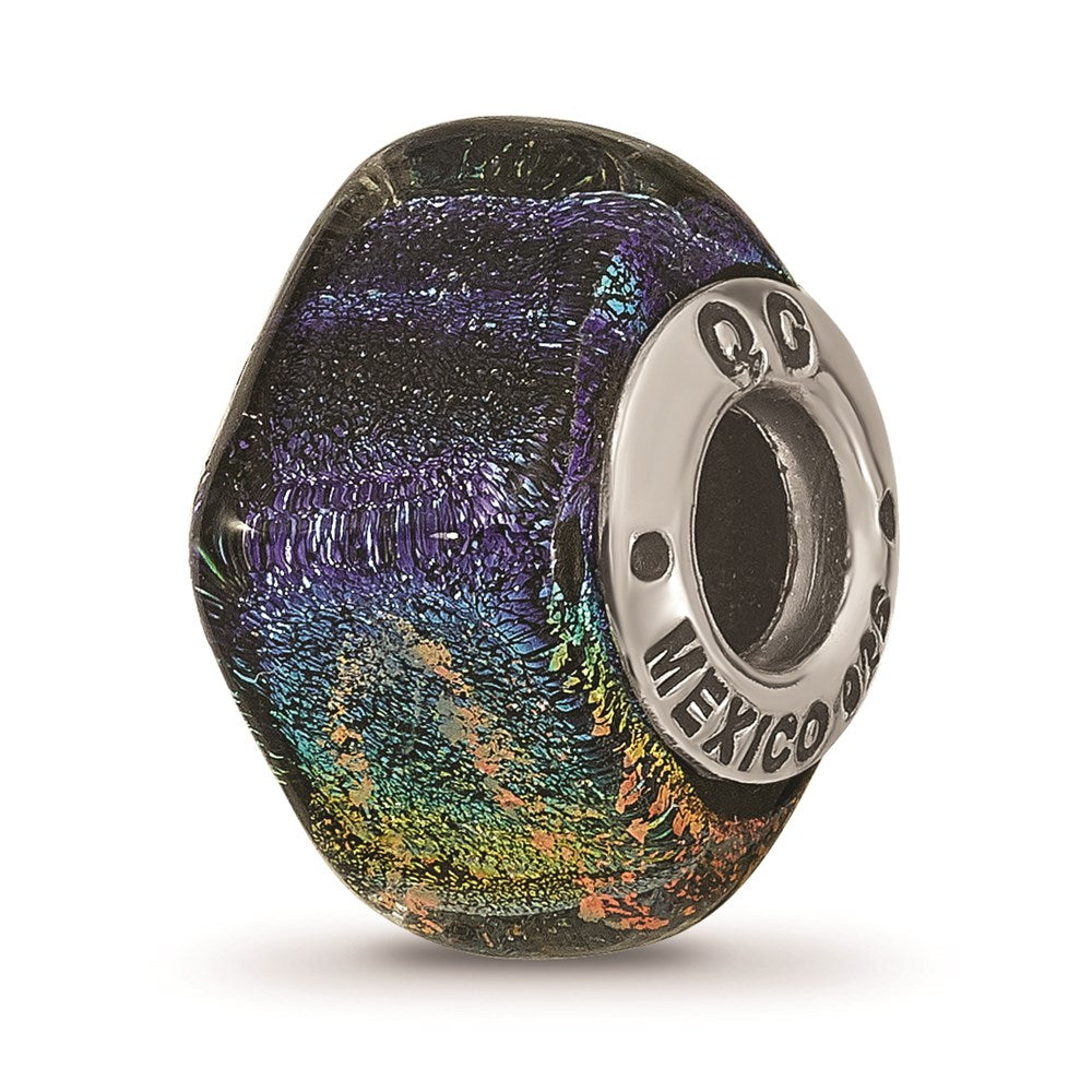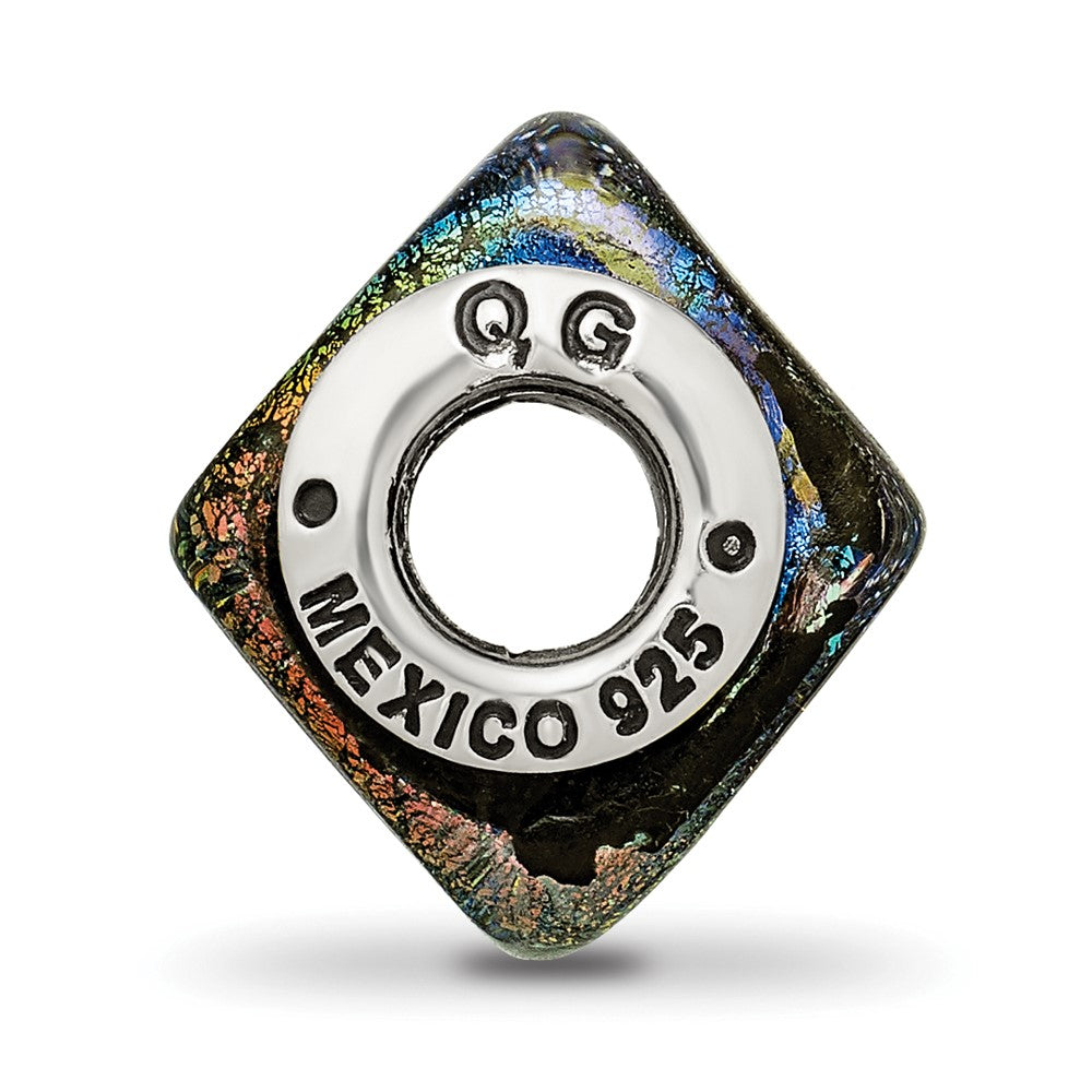925 Sterling Silver Reflections Rainbow Dichroic Glass Square Shape Bead Charm Pendant