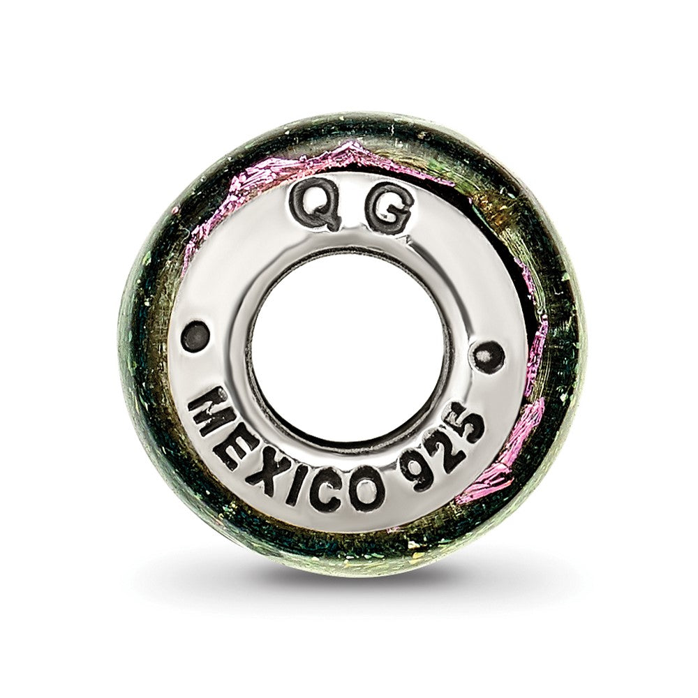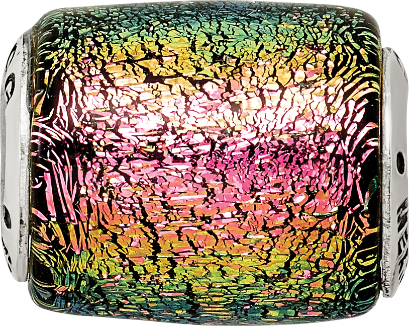 925 Sterling Silver Reflections Purple Dichroic Glass Barrel Bead Charm Pendant