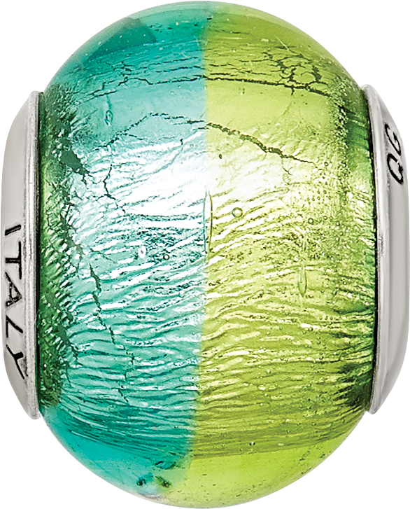 925 Sterling Silver Reflections Green/Blue Italian Murano Bead Charm Pendant