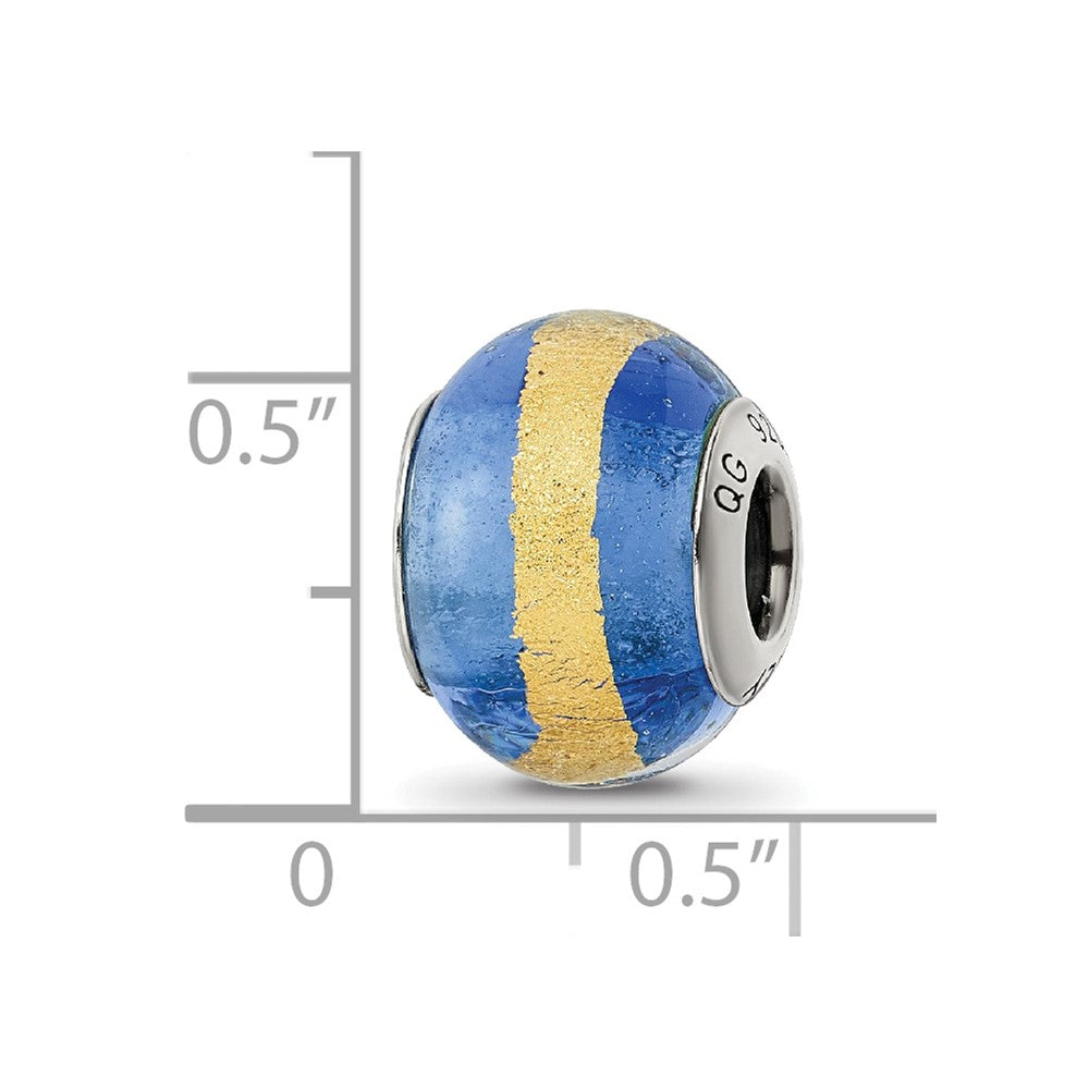 925 Sterling Silver Reflections Blue/Gold Italian Murano Bead Charm Pendant