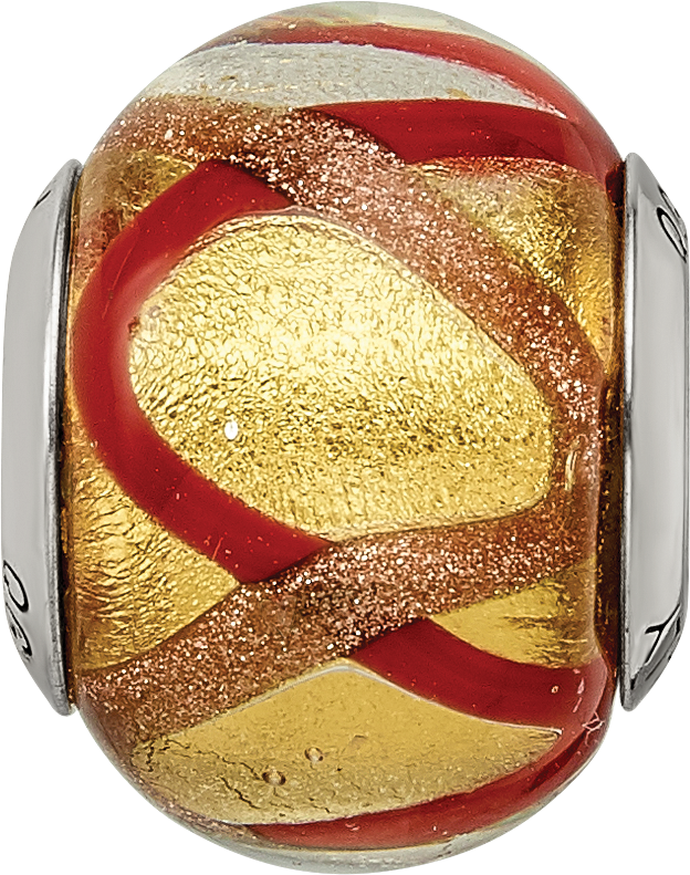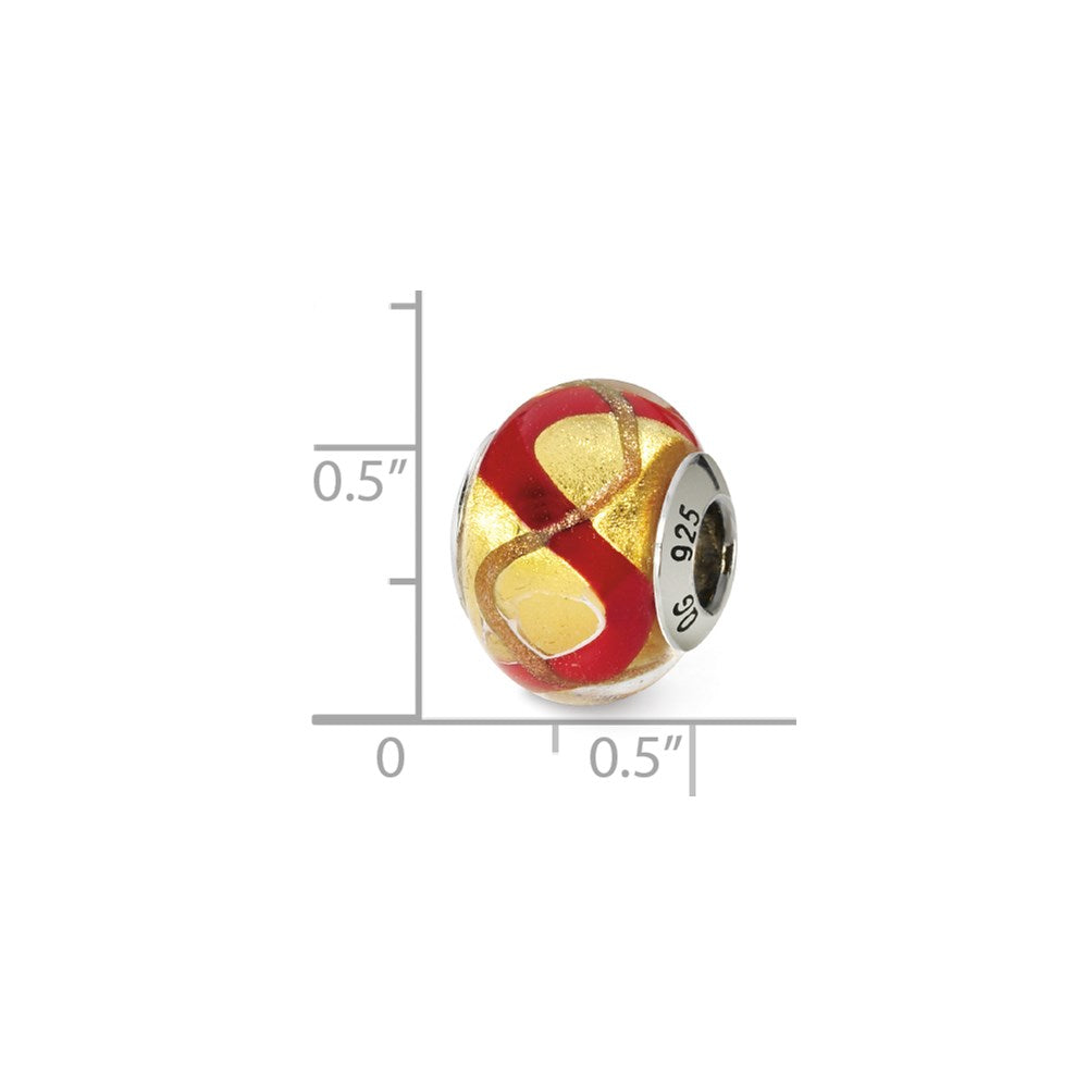 925 Sterling Silver Reflections Yellow-ish Gold/Red Italian Murano Bead Charm Pendant