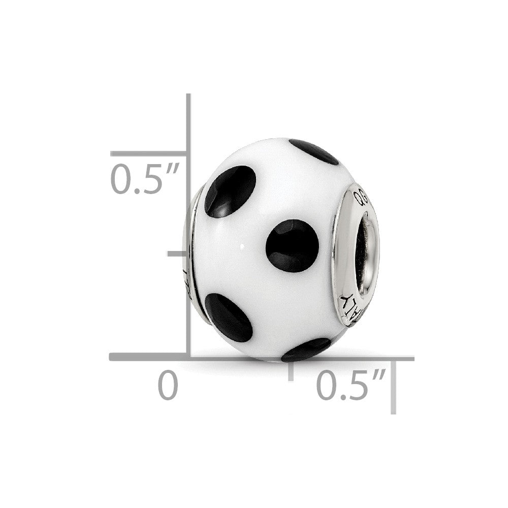 925 Sterling Silver Reflections White/Black Italian Murano Bead Charm Pendant