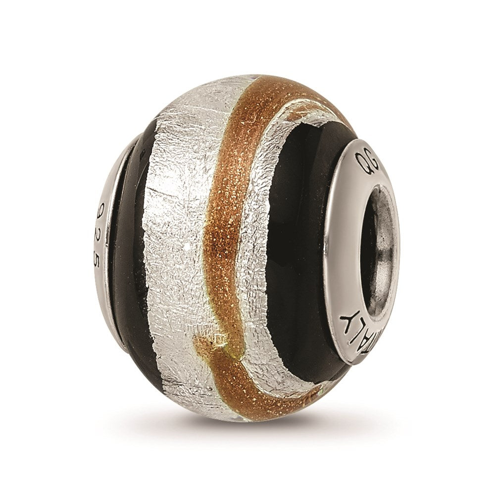 925 Sterling Silver Reflections Silver/Gold/Black Italian Murano Bead Charm Pendant