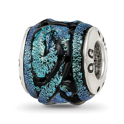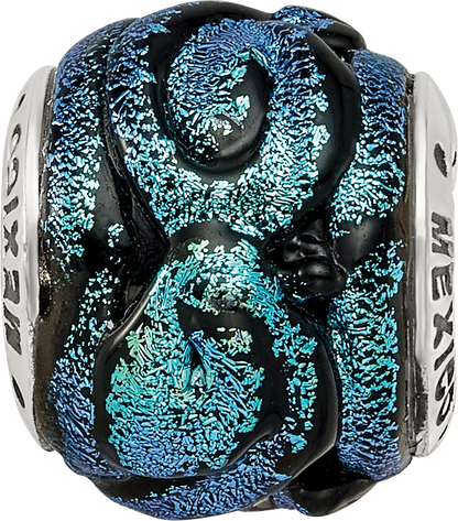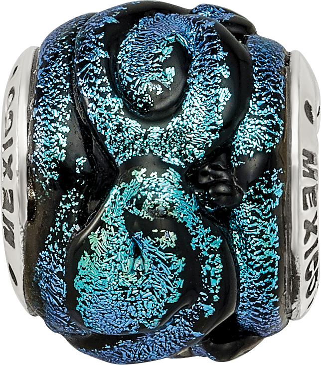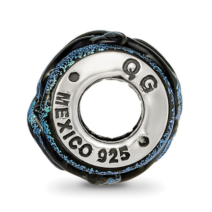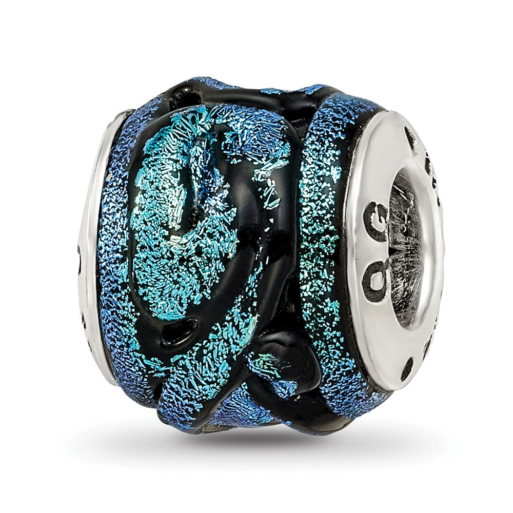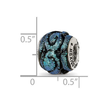 925 Sterling Silver Reflections Blue Dichroic Glass Bead Charm Pendant
