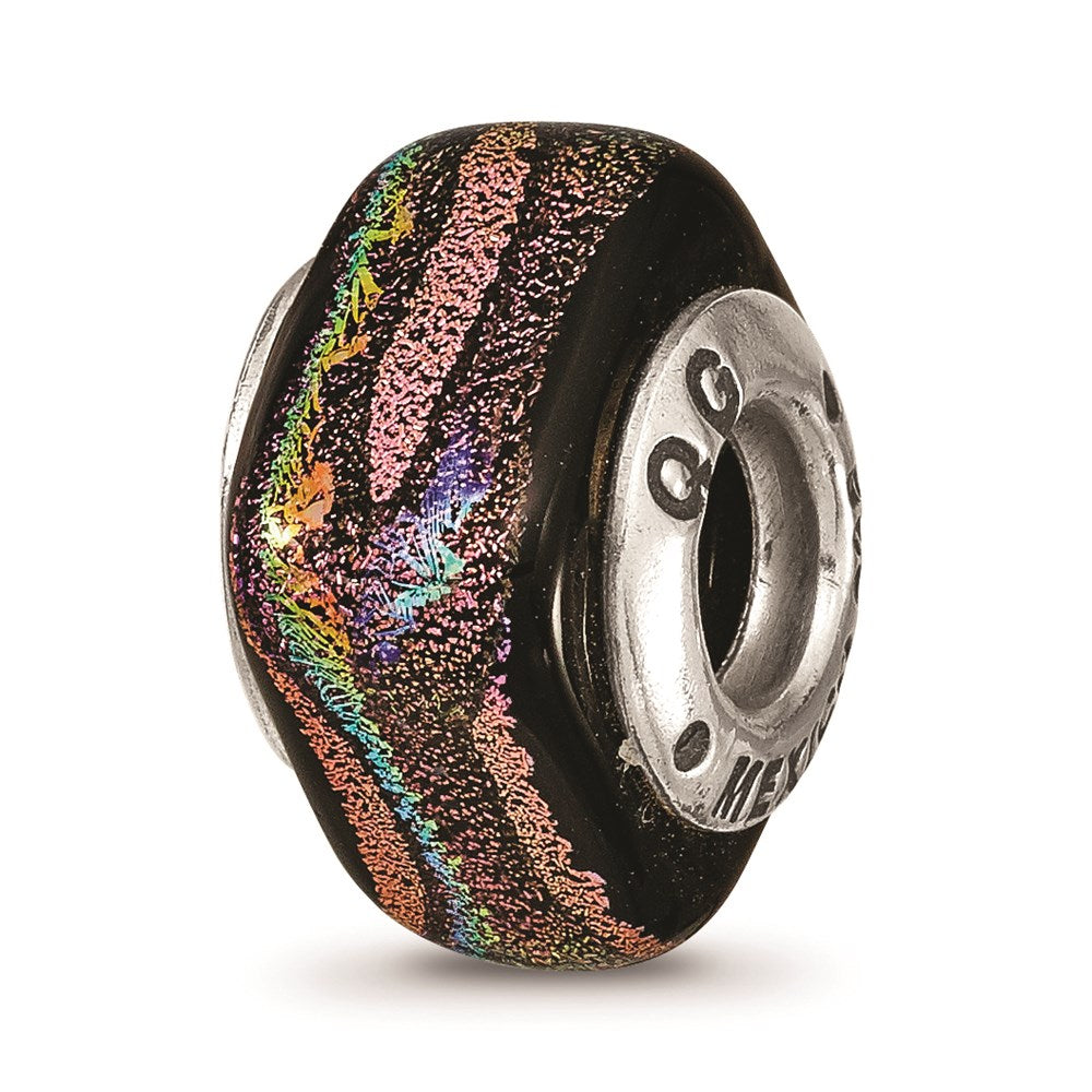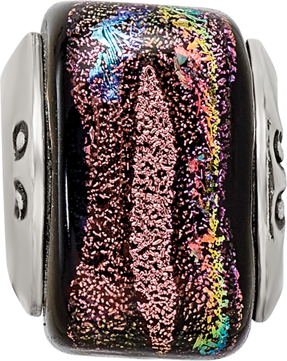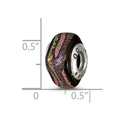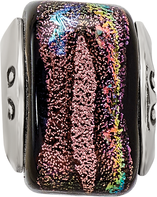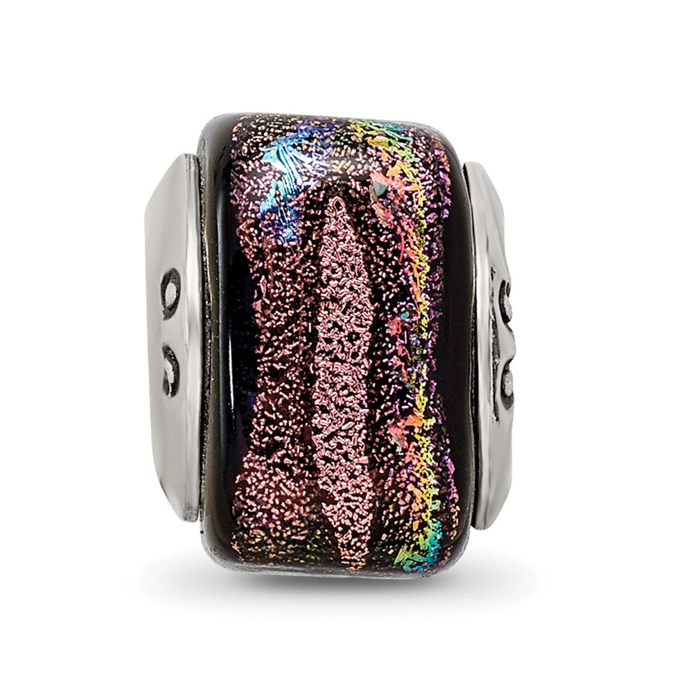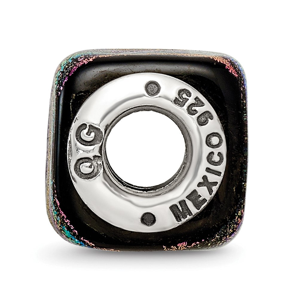 925 Sterling Silver Reflections Purple Square Shape Dichroic Glass Bead Charm Pendant
