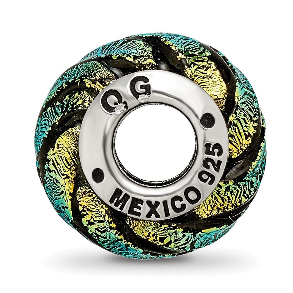 925 Sterling Silver Reflections Green Swirl Dichroic Glass Bead Charm Pendant