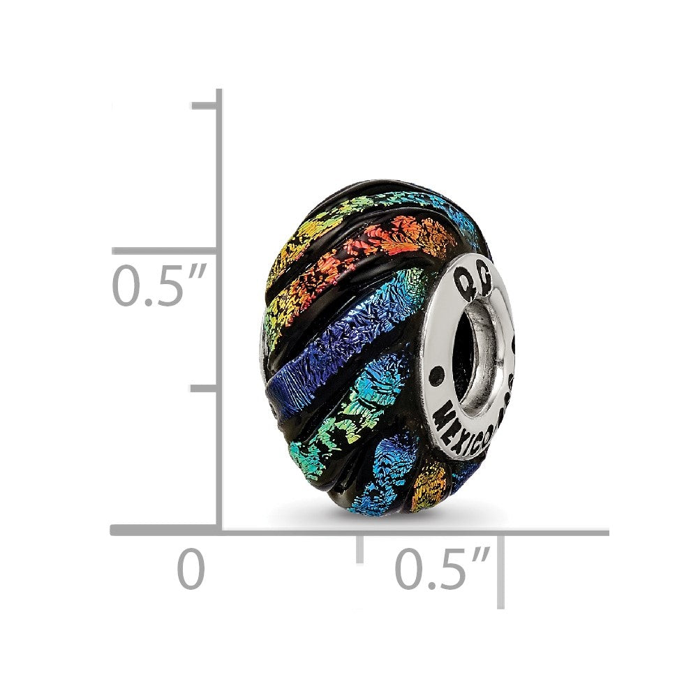 925 Sterling Silver Reflections Rainbow Swirl Dichroic Glass Bead Charm Pendant