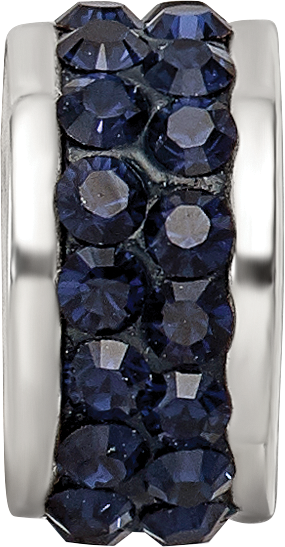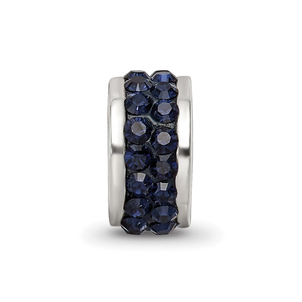 925 Sterling Silver Reflections Dark Blue Double Row Crystal Bead Charm Pendant