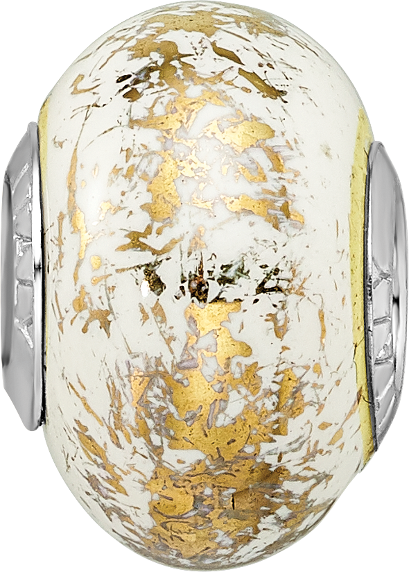 925 Sterling Silver Reflections White with Gold Foil Ceramic Bead Charm Pendant