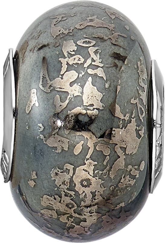 925 Sterling Silver Reflections Gray with 950 Platinum Foil Ceramic Bead Charm Pendant