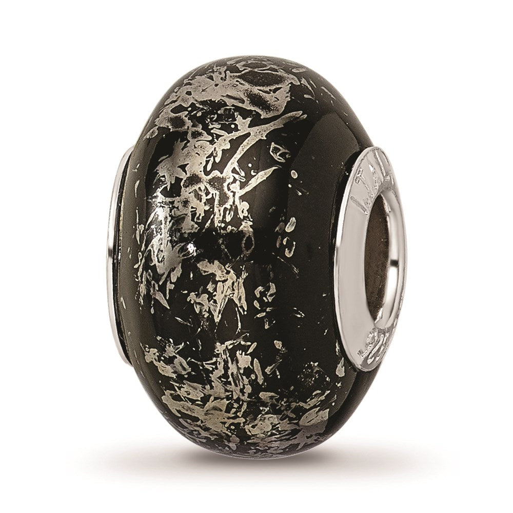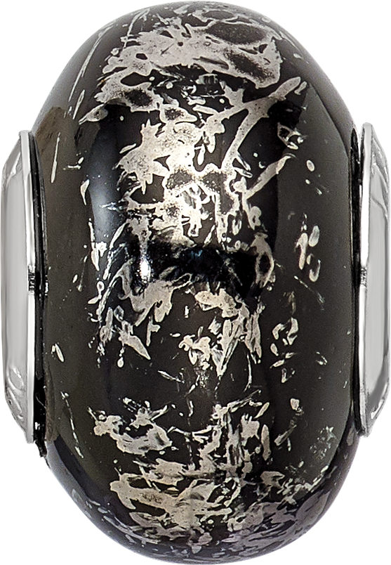 925 Sterling Silver Reflections Black with 950 Platinum Foil Ceramic Bead Charm Pendant