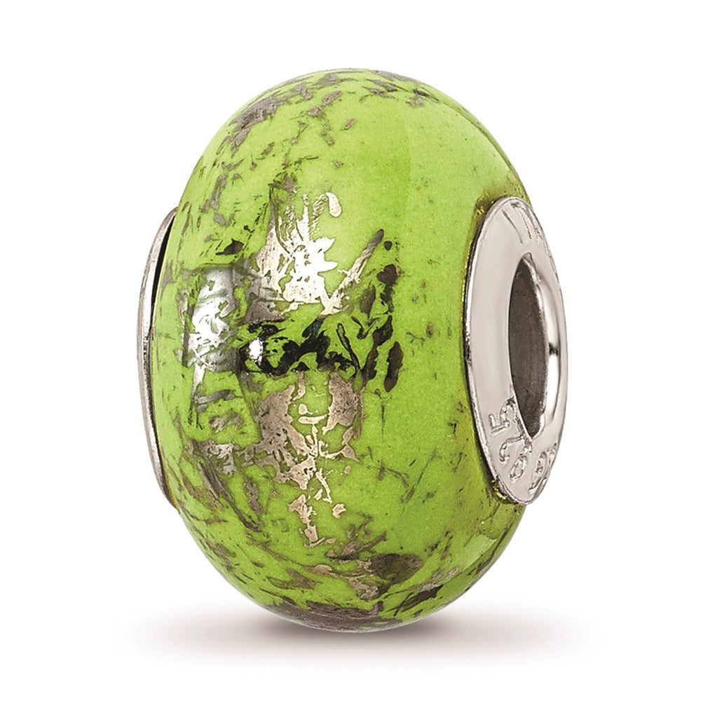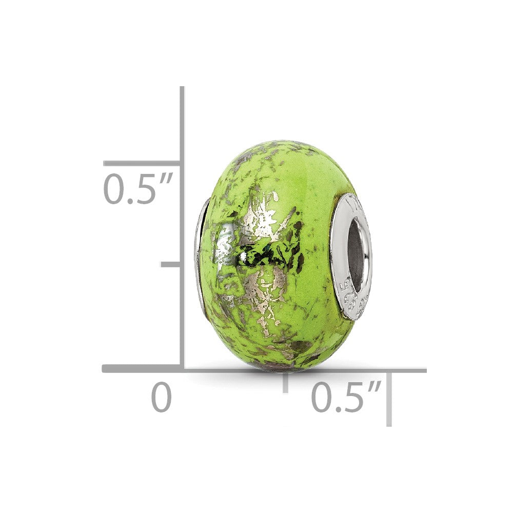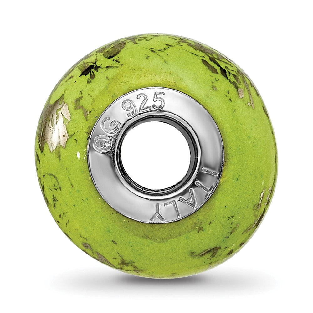 925 Sterling Silver Reflections Green with 950 Platinum Foil Ceramic Bead Charm Pendant