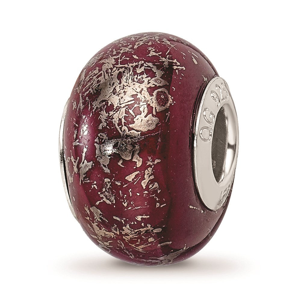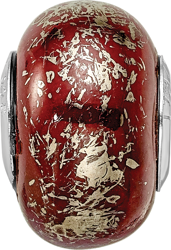 925 Sterling Silver Reflections Dark Red with 950 Platinum Foil Ceramic Bead Charm Pendant
