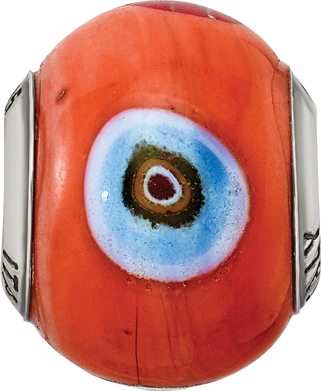 925 Sterling Silver Reflections Italian Orange with Decorative Accents Glass Bead Charm Pendant