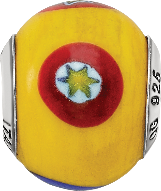 925 Sterling Silver Reflections Italian Yellow with Decorative Accents Glass Bead Charm Pendant