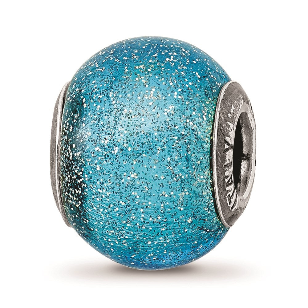 925 Sterling Silver Reflections Italian Light Blue with Silver Glitter Glass Bead Charm Pendant