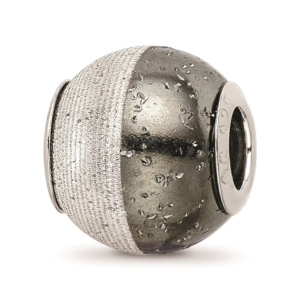 925 Sterling Silver Reflections Etched and Black with Sparkles Bead Charm Pendant