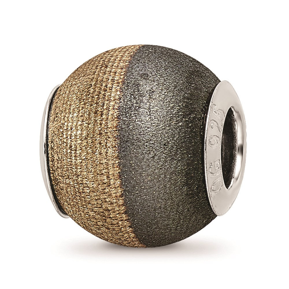 925 Sterling Silver Reflections Gold Plated Etched and Black Matte Bead Charm Pendant