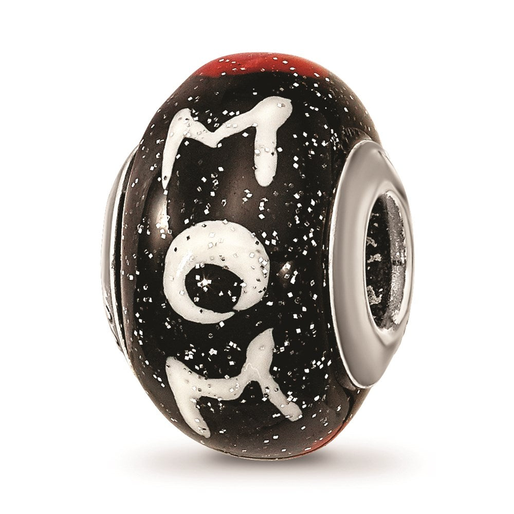 925 Sterling Silver Reflections Mom with Hearts Black Italian Glass Bead Charm Pendant