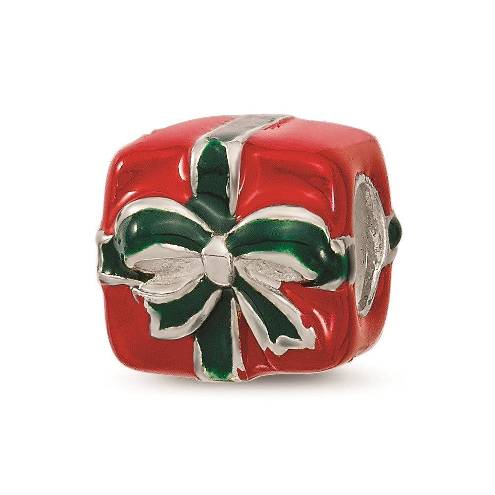 925 Sterling Silver Reflections Green and Red Enameled Present Bead Charm Pendant